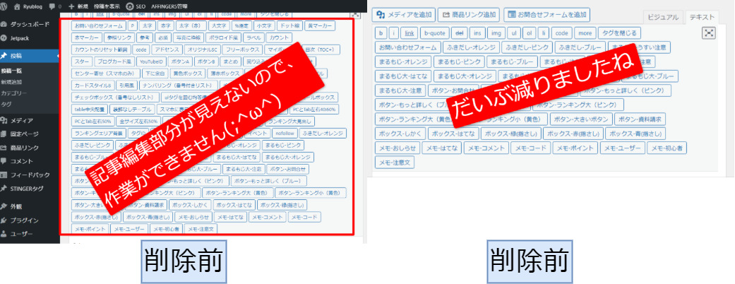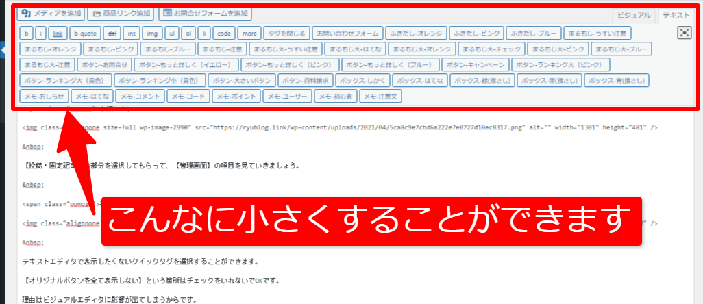 残りは”adquicktag”というプラグインで意図的に追加しているクイックタグなので、そっちのプラグインから変更しないとダメだね