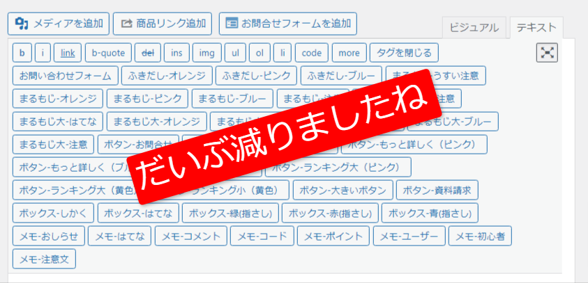 普段はビジュアルエディタでしかほとんど使わない方が、多いとは思いますがちょっとした編集をしたいときにまったく使えないとなると困りますよね。