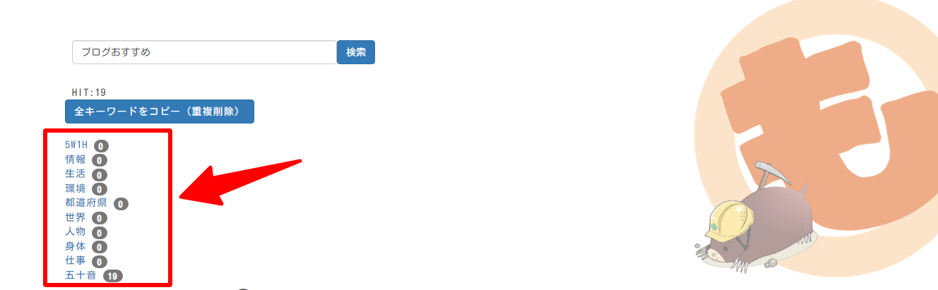 もぐらキーワードは独自のキーワード選出システムを取り入れているらしく、他のキーワード選定ツールでは探し出せないキーワードを見つけることができます。