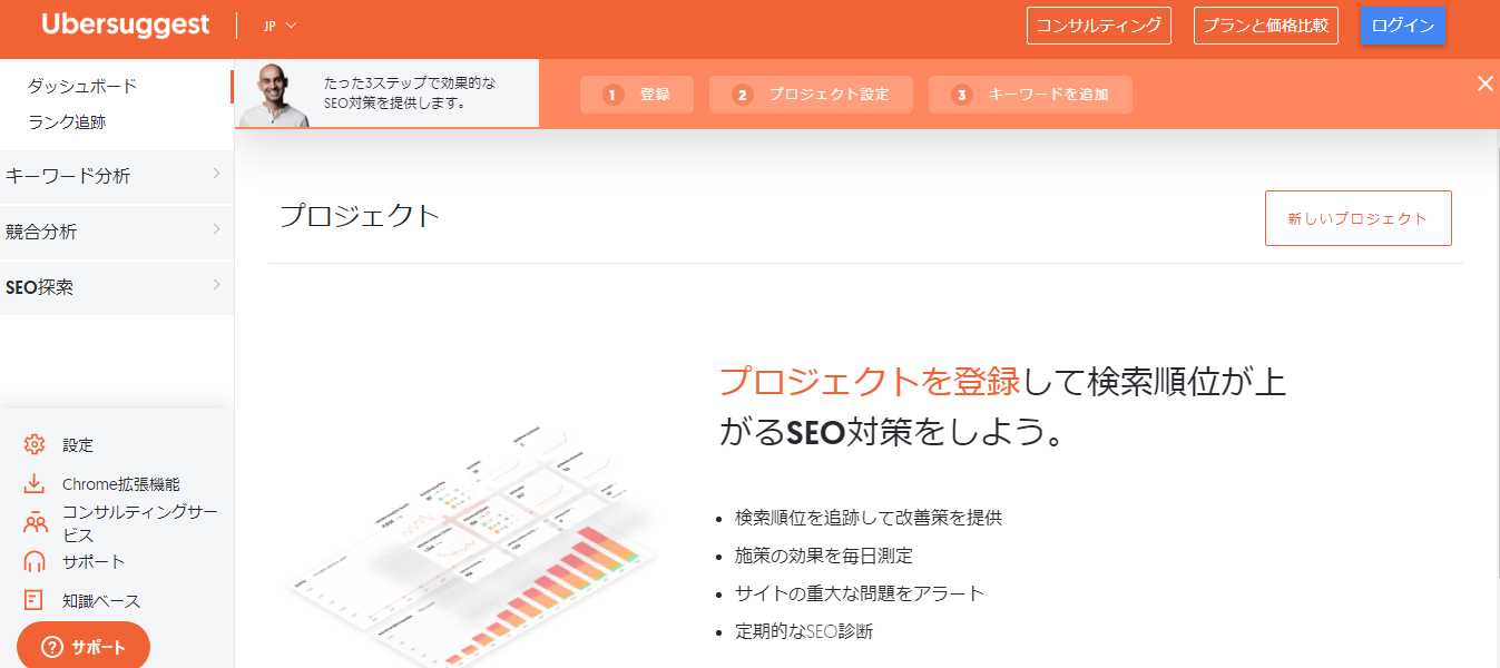 内容的には「Ubersuggest」だけで下記を満たすことができてしまいます。
